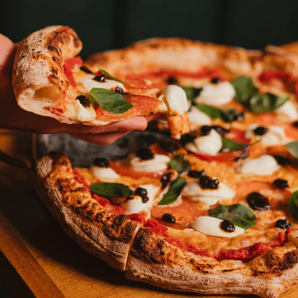 Massa de longa fermentação (24h), borda leve e crocante, ingredientes selecionados e combinações que vão dos sabores tradicionais às criações autorais exclusivas.