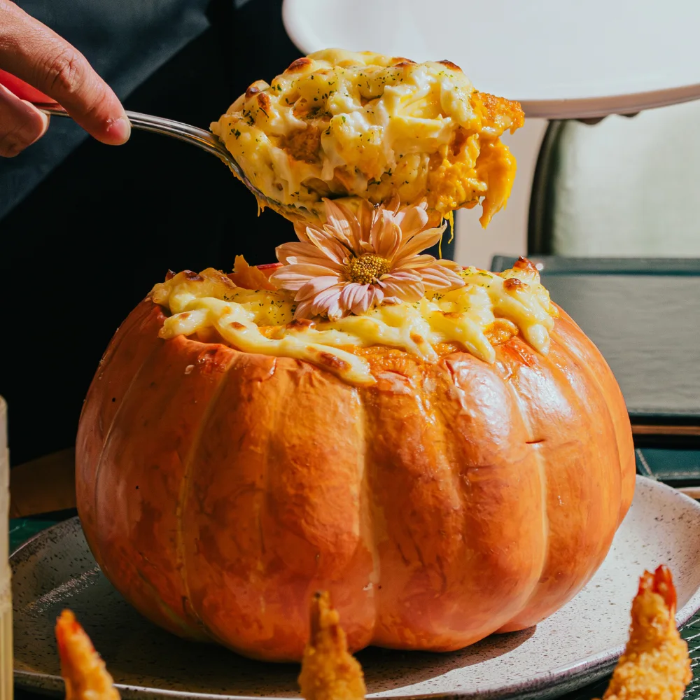 Um dos pratos mais bem servidos da casa, nossa moranga é recheada com um delicioso de abóbora, camarões médios e champignon gratinada com catupiry. Acompanha arroz branco e batata palha artesanal. Experimente! Serve 4 pessoas.